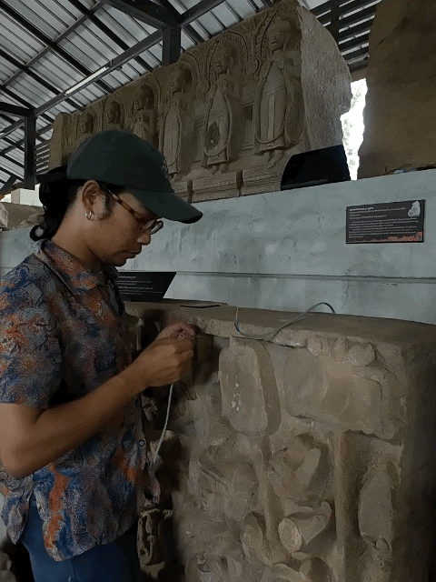 Ancient voices drift through carved stones, displaced souls slumber in silence, technology whispers to awaken them – experimental sound art transforming local wisdom into floating rhythms like Sabaeng flowers falling to distant lands. Kwan Oei Kwan Ma by PLERN VERN, a contemporary sound collective of Pongsak Wansri and Suthipong Sudsang, who reinterpret Isan folk traditions through experimental sound and electronic music. With Si Sa Ket roots and cultural heritage backgrounds, local soul-calling melodies are housed in the stone inscription hall, displaying ancient Khmer temple artifacts at Phimai National Museum. Description by PhimaiLongweek